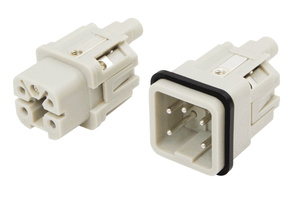 The connector housings are compatible and CE-compliant with numerous insert manufacturers (Harting, Ilme, Phoenix Contact, TE Connectivity, Weidmüller, Lapp, Amphenol, Molex, RS Pro, ...).
